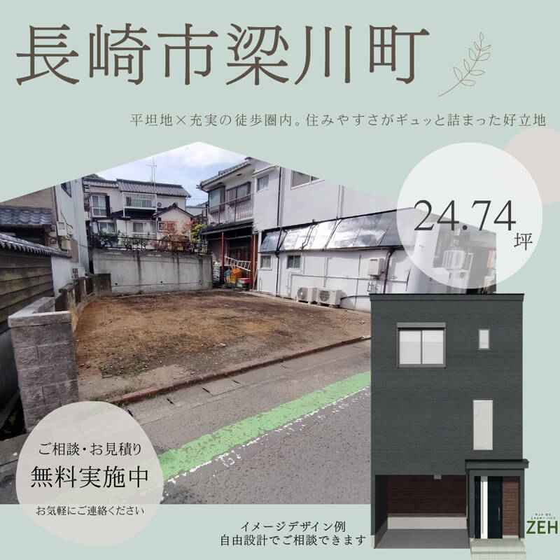 わたしたちの強みは土地と住宅をセットでご提案できること。長崎市、近郊エリアを中心に40年以上手がけてきた施工の実績があります。道下や狭小地など、難易度高めの土地でも、これまで積み重ねてきた経験からベストなプランを導き出します。