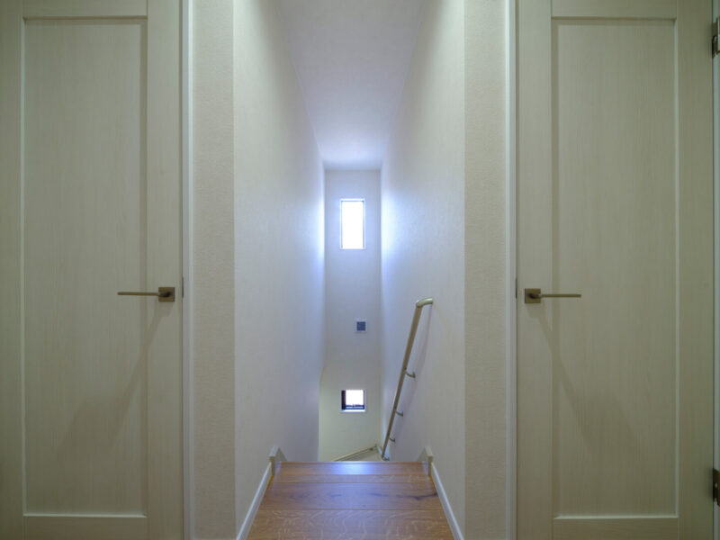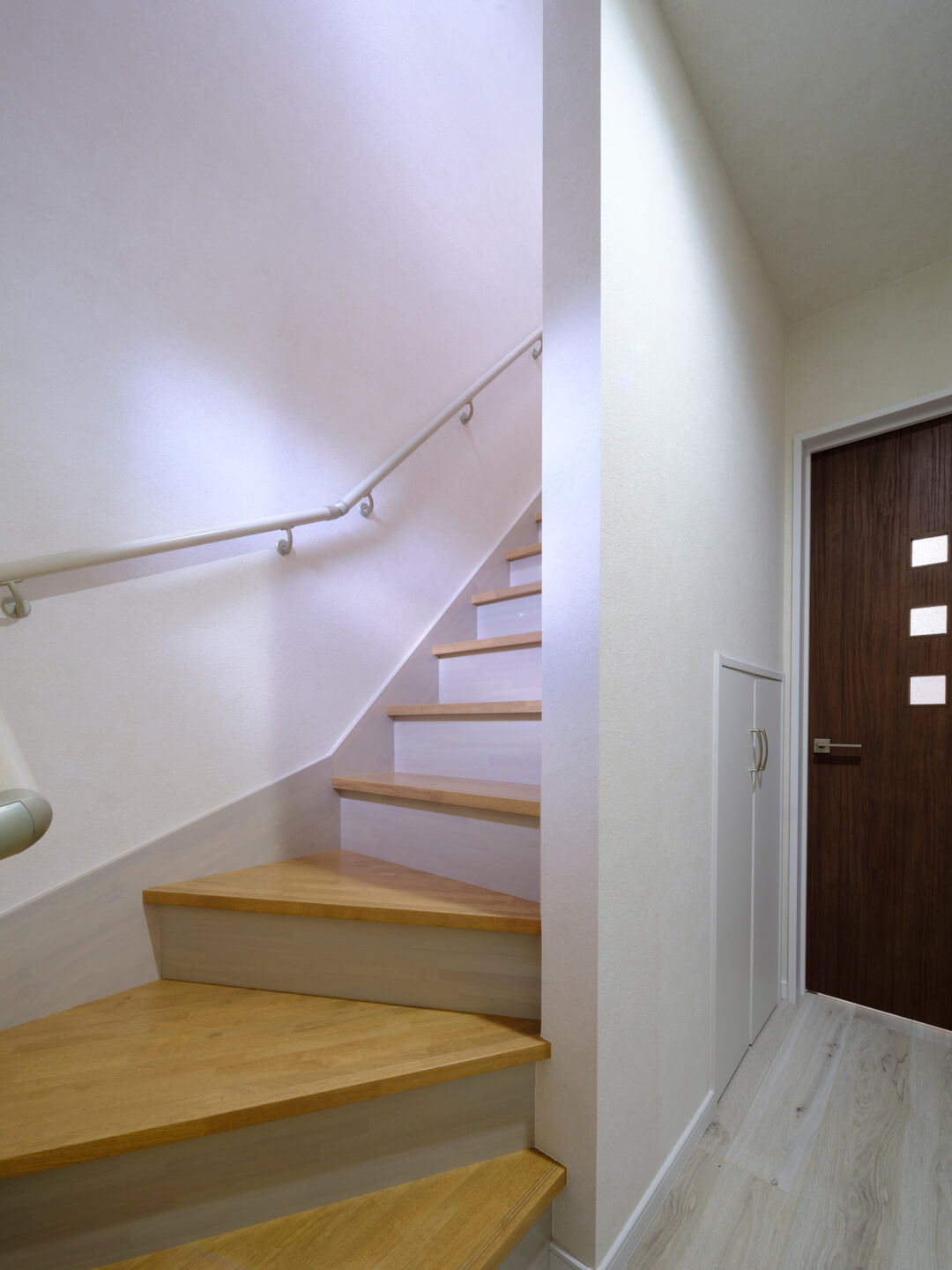 デザインはもちろん、暮らしやすさも外せません。生活感が出がちな脱衣室は洗面スペースと分けて。同時に別々の人が使えたり、来客時の手洗い場として活用できたりなどのメリットがあります。さらにO邸ではリビングから脱衣室が見えないように間取りにもこだわりました。顔を洗ったり、お風呂に入ったり、洗濯をしたり。毎日おこなうからこそ、たとえ小さな不満でも解消しておきたいもの。ストレスをためない工夫はもちろん、ムダな時間もぐっと減りそうです。さらに2階には3畳分のウォークインクローゼットを設置。各個室にも収納スペースはありますが、収納機能を集中させることで、ほかの部屋に物を置かずにすみ、家全体をすっきりキープできます。ウォークインクローゼットに必要な広さは、収納する物の量や家族構成などによって変わります。形や収納タイプもさまざまです。日々の暮らしを快適にするためにも、事前にしっかりと確認しておきたいところ。どうしようかなと迷ったときは、お気軽ご相談ください。
