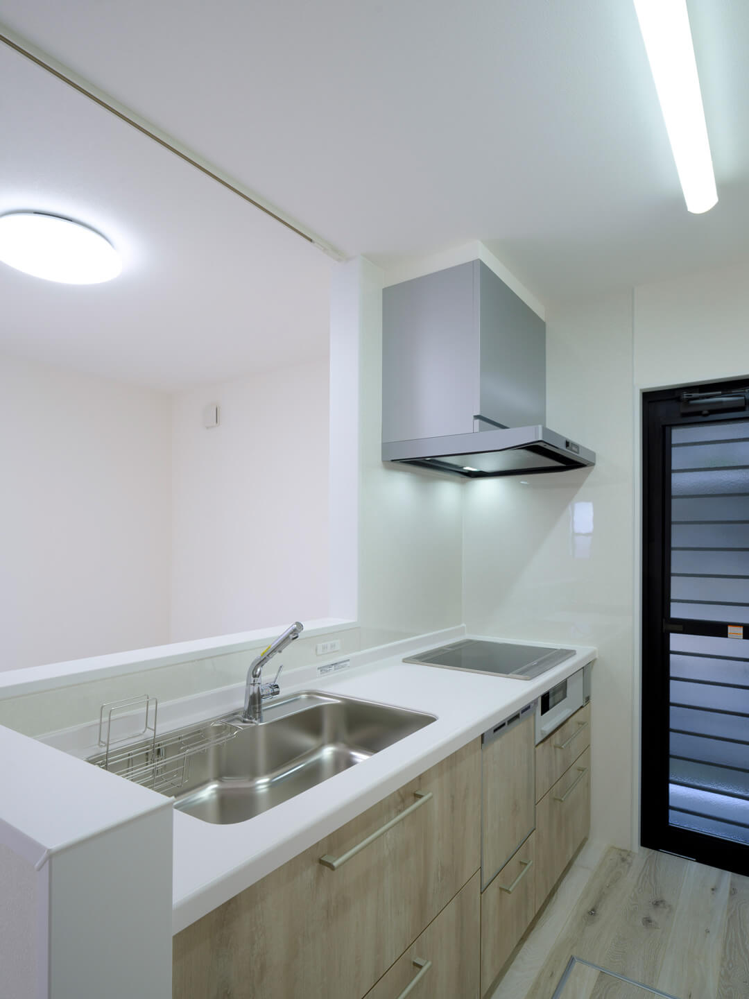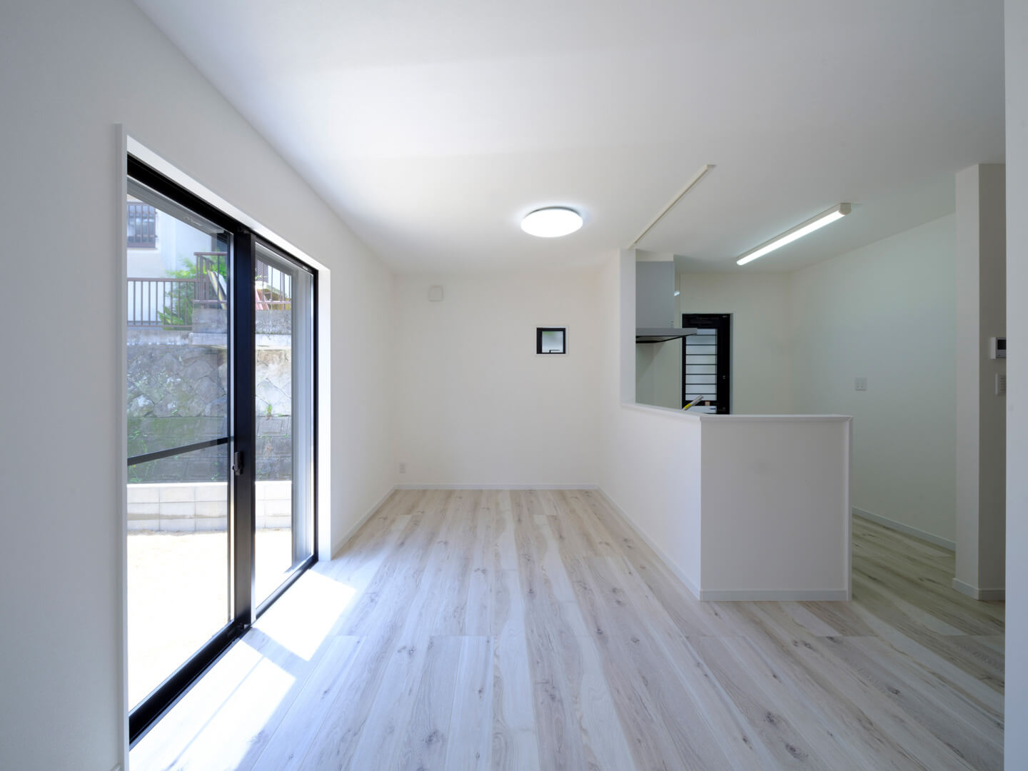 家族3人で暮らすOさま邸が建つのは、もともと小規模の掘車庫があった場所。まずは、ご要望のあった駐車場スペースの拡張工事にとりかかりました。期間はかかりましたが、家の前に車3台がラクラクとめられるスペースを確保。このエリアで、この広さはなかなかありません。家の顔となる外観はホワイトとグレーのツートン。表情にアクセントをつけるため、柱や外壁面を上げて凹凸をつけています。そうすることで外観に陰影が生まれ、シンプルなベースデザインに立体感と高級感をプラス。毎日、目にするものだからこそ「らしさ」があらわれる場所でもあります。
